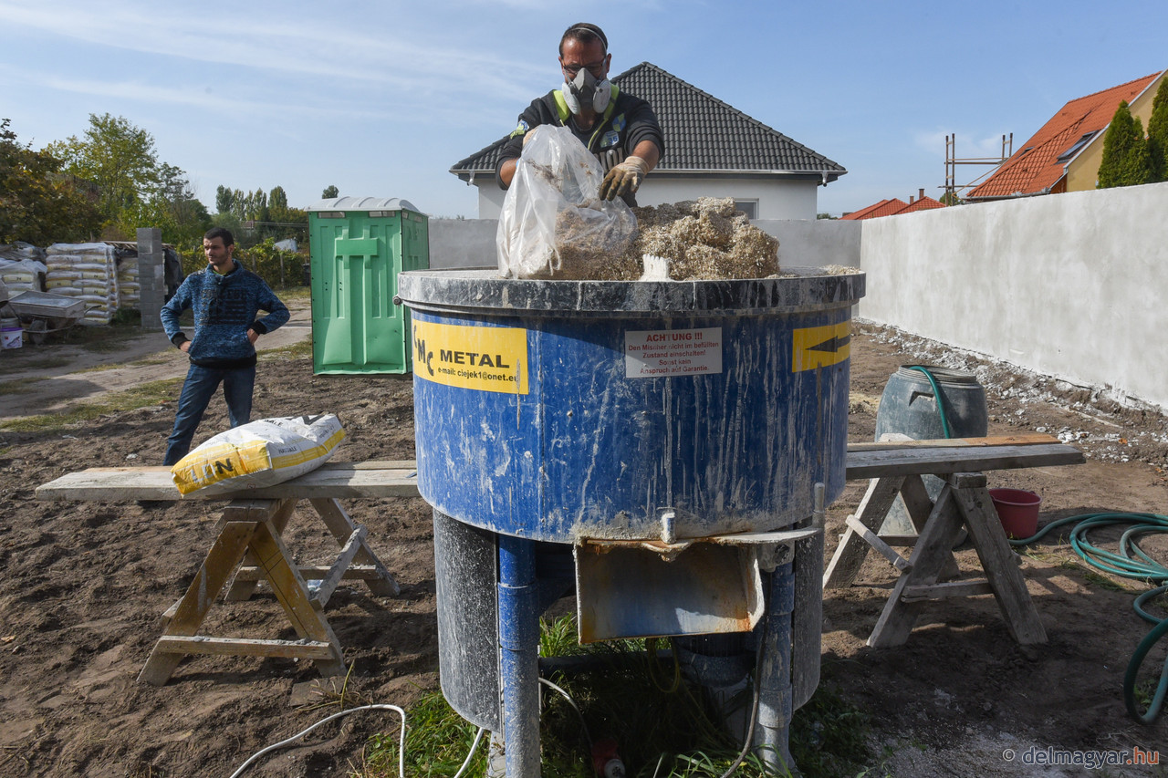 Domaszék - Kender, mész és víz keverékével betonoztak szombaton egy környezetbarát házat Domaszéken. Bemutató épületnek szánja egy szegedi szövetkezet.